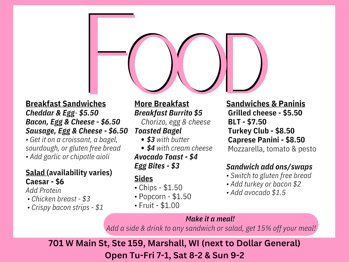 For more details or to plan your visit, you can reach them at +1 608-354-7463. Embrace the charm of CottageRose Coffee and make it your new favorite spot in Marshall!